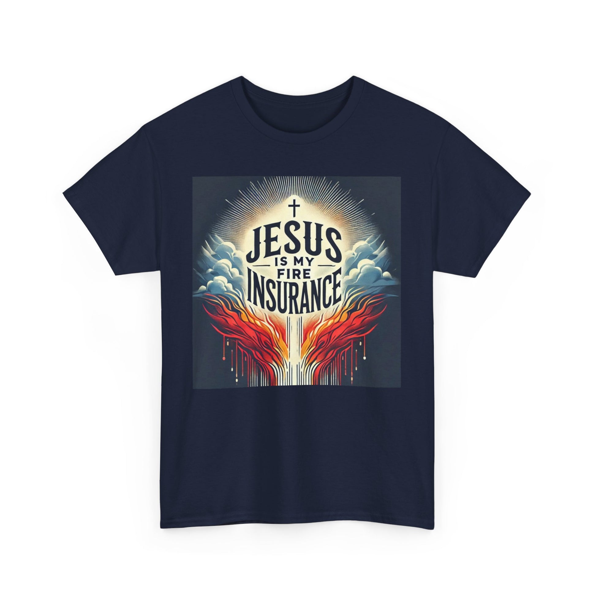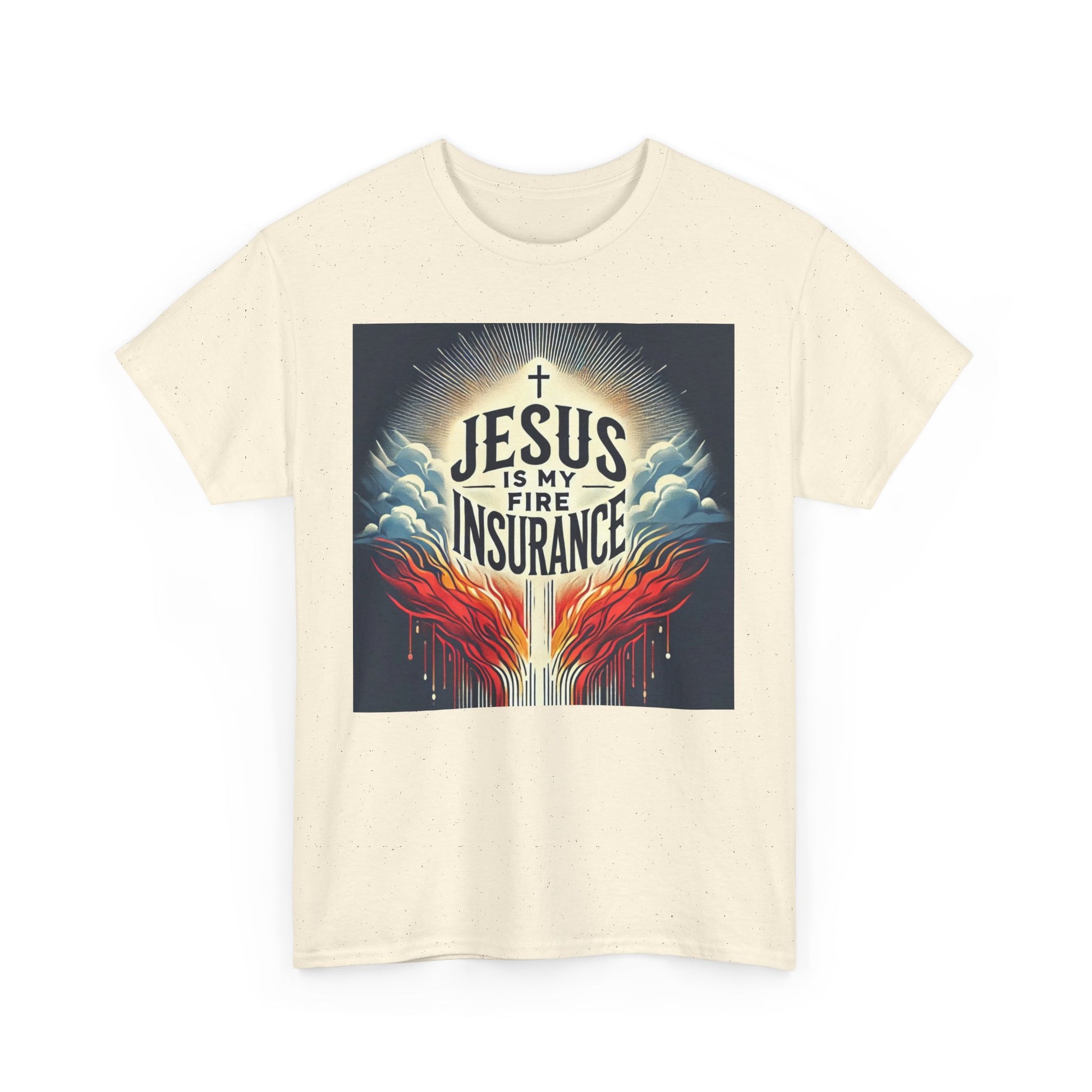 Faith-Inspired Unisex Heavy Cotton Tee - Jesus is My Fire Insurance, Christian Apparel, Religious Gifts, Casual Wear, Unique Tee